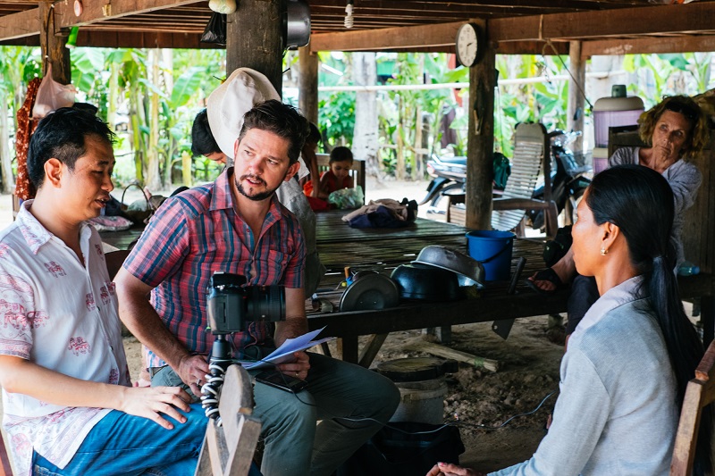 Biodigesters Managing Director, Ben Jeffreys and Live & Learn Director, Socheath Sou interview Long Sokhon about her experience with her biodigester.